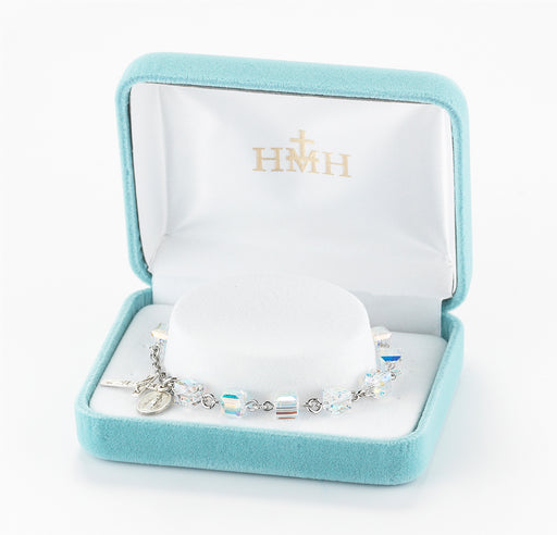 Finest Austrian Crystal Clear Cube Shaped Sterling Silver Rosary Bracelet 6mm