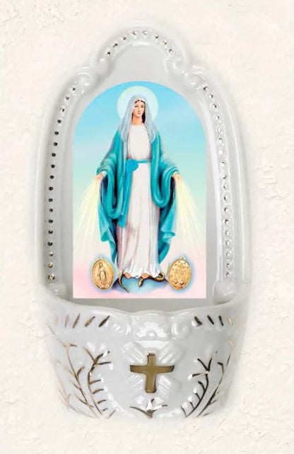 5-1/4 Inch Porcelain Holy Water Font featuring Miraculous Mary
