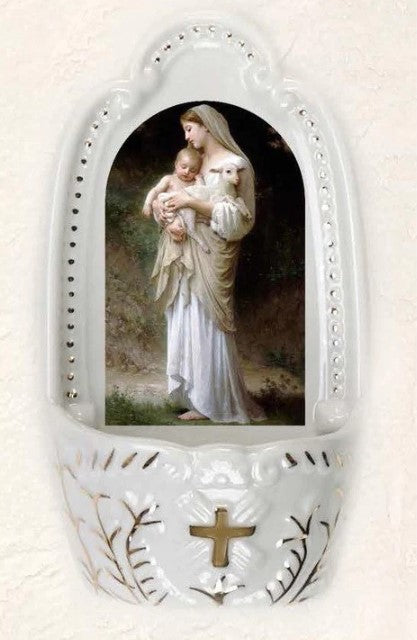 5-1/4 Inch Porcelain Holy Water Font featuring The Innocence