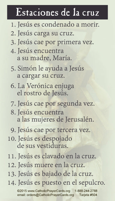 Keep God in LifeSenor Jesus, ayudame unir mi cruz a la suya Stations of the Cross Prayer Card in Spanish 3.5" x 2" card Made out of cardstock Ten prayer cards...