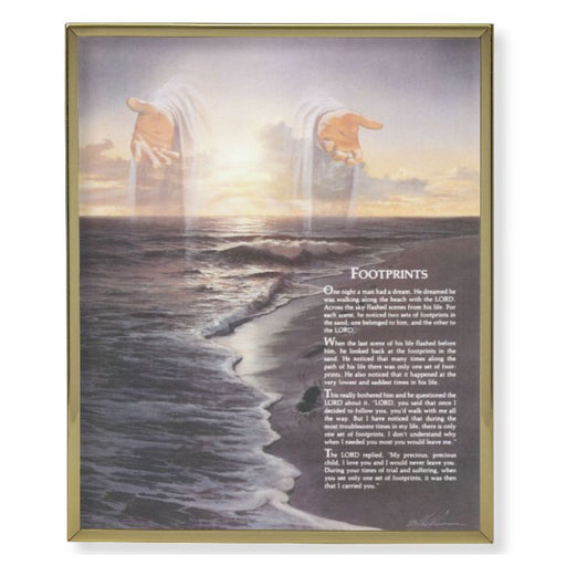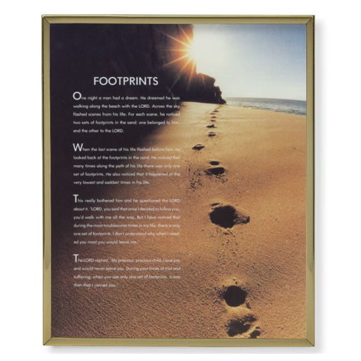 Keep God in LifeGold Plaque Frame Crystal Clear Lamination 11" x 14" Footprints Print Mounted on MDF Wood board Frame size is 13-1/2" x 16-9/16" Frame widt...